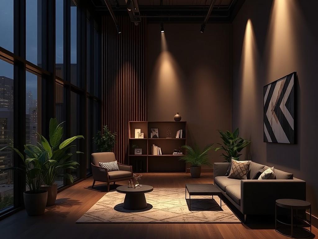 Для вечернего настроения добавляем тёплый свет вокруг зоны отдыха и мягкую подсветку пола. Такой набор позволяет обеспечить баланс между ясностью и уютом, не перегружая пространство излишней яркостью.